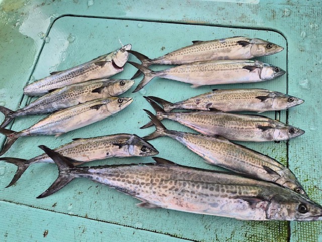 9月22日(月)の釣果・・メジロ3匹・ハマチツバス7匹・サワラ1匹・サゴシ12匹(写真他クーラー)・太刀魚(1.5h)1人3〜13匹