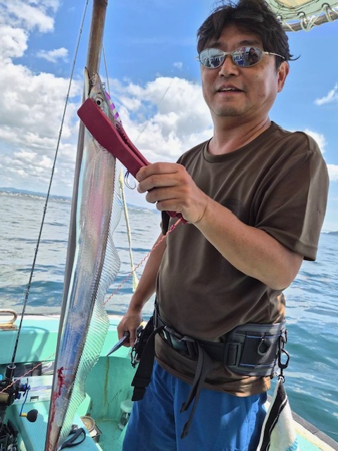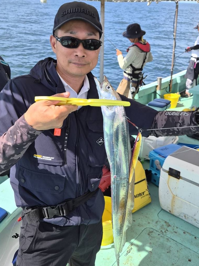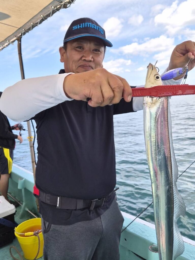 ジギングで出船中です(^O^)/ 太刀魚は、テンヤの使用可です。(餌は各自でご準備をお願いしますm(_ _)m