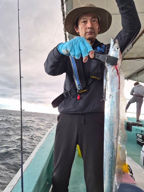 ジギングで出船中です(^O^)/ 太刀魚は、テンヤの使用可です。(餌は各自でご準備をお願いしますm(_ _)m