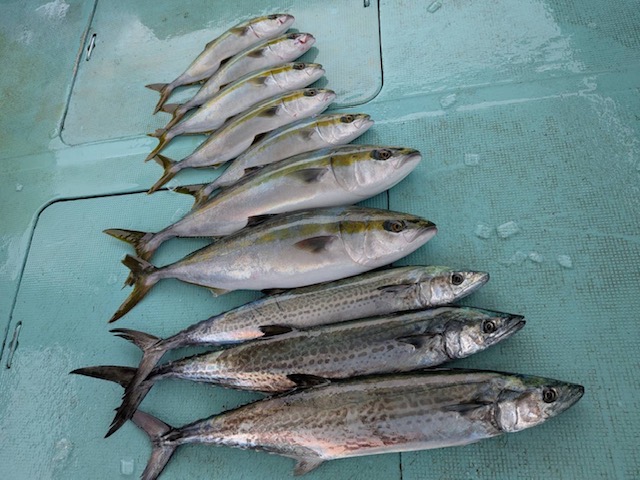 10月26日(日)の釣果・・メジロ2匹・ハマチ5匹・サワラ3匹 ※バラシもありましたがあたり少なく厳しかったです>_<
