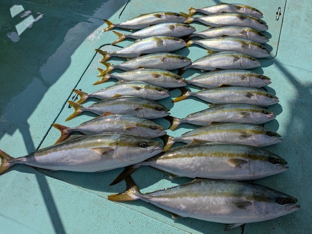 11月8日(土)の釣果・・メジロ3匹・ハマチ21匹(写真他リリース4匹)・サワラ3匹・サゴシ3匹