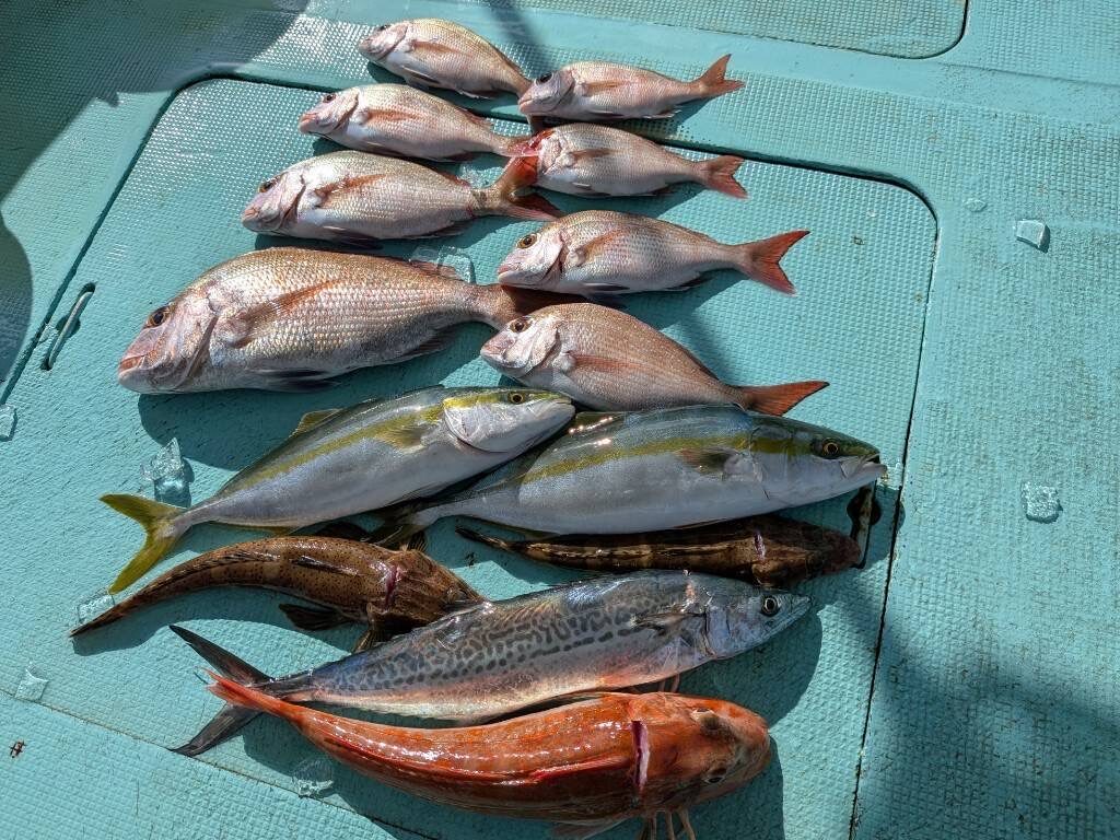 11月11日(火)の釣果・・タイ10匹(写真他2匹リリース)・コチ2匹・ハマチ2匹・ホウボウ1匹・サゴシ1匹