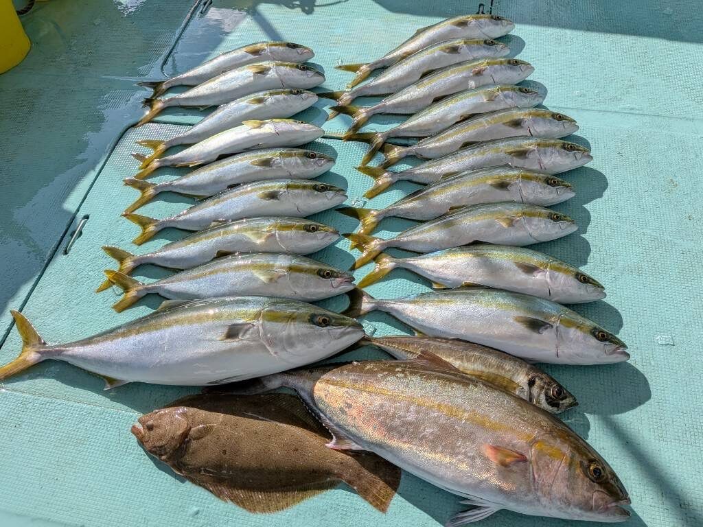 11月20日(木)13名様の釣果・・メジロ1匹・カンパチ1匹(68㌢)・ハマチ18匹(バラシあり)・ヒラメ1匹・オニアジ1匹