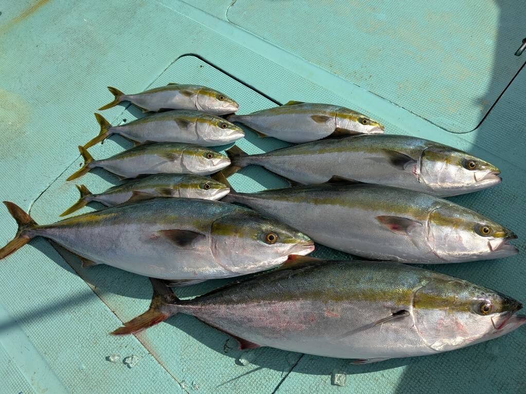 11月24日(月)の釣果・・ブリ2匹(92・86㌢)・メジロ2匹(74・70㌢)・ハマチ5匹・サワラ1匹・サゴシ3匹・サバ1匹(リリース)