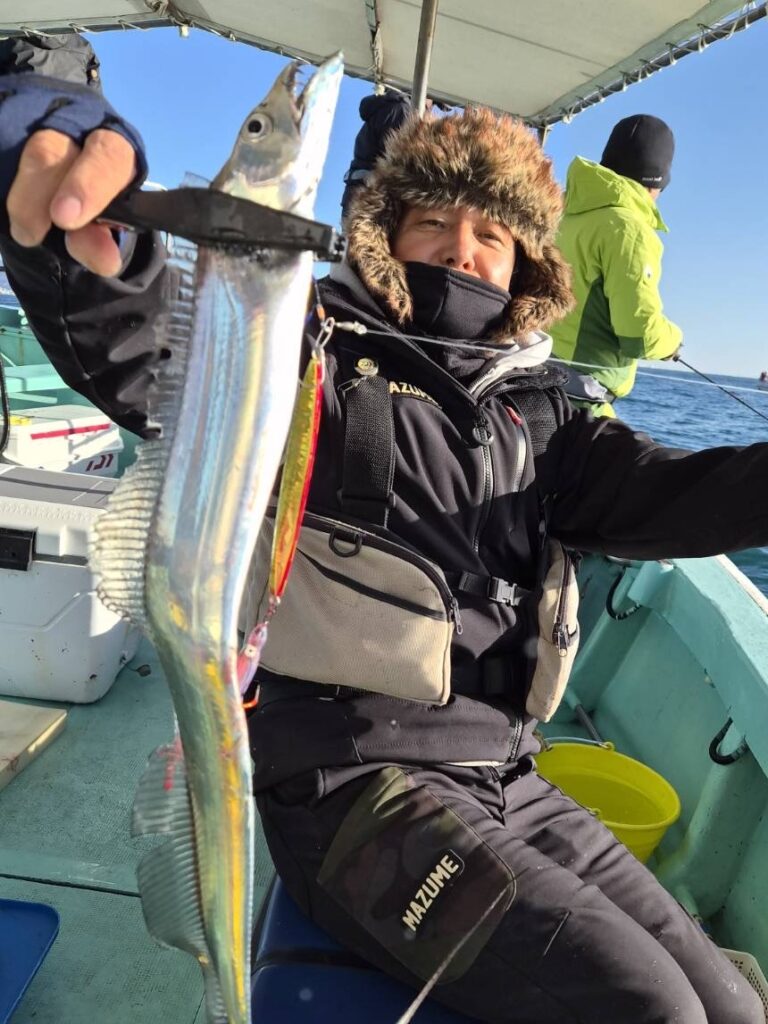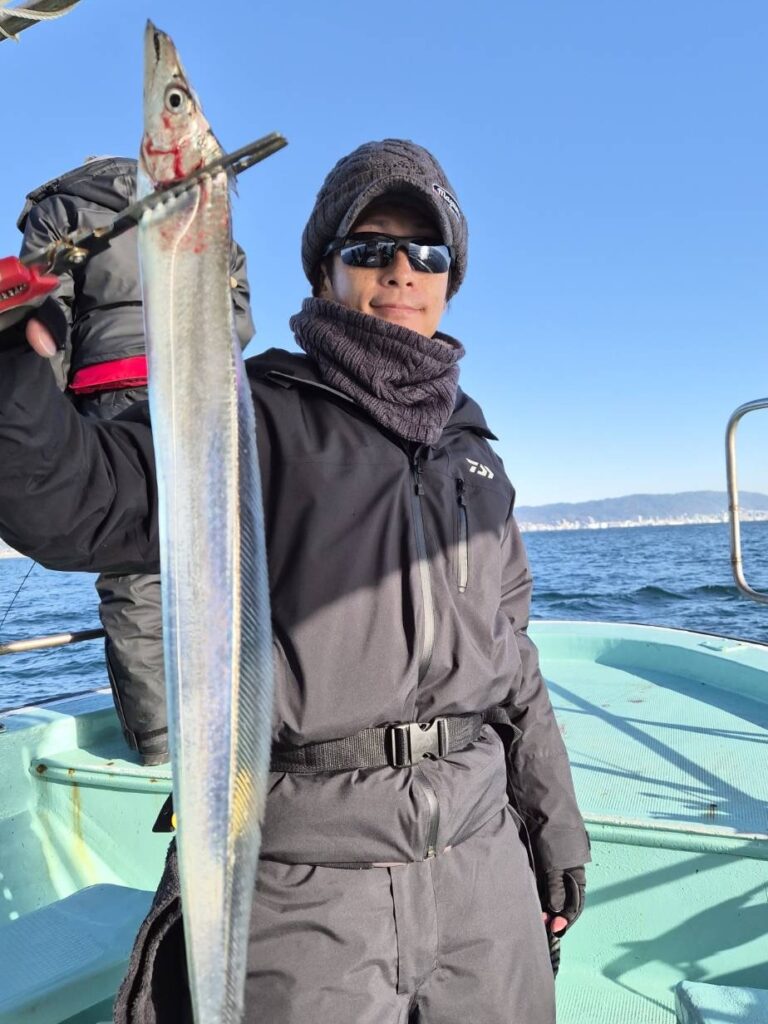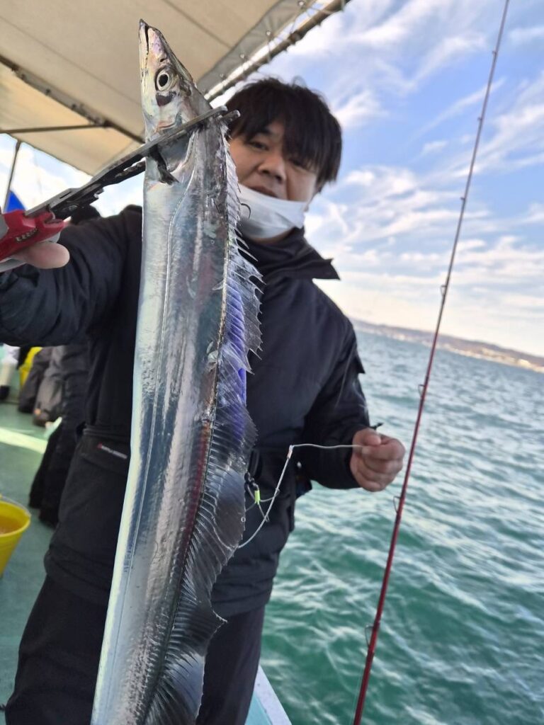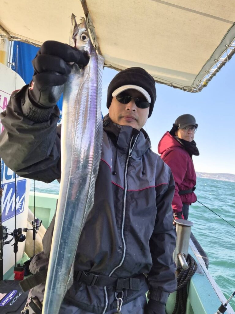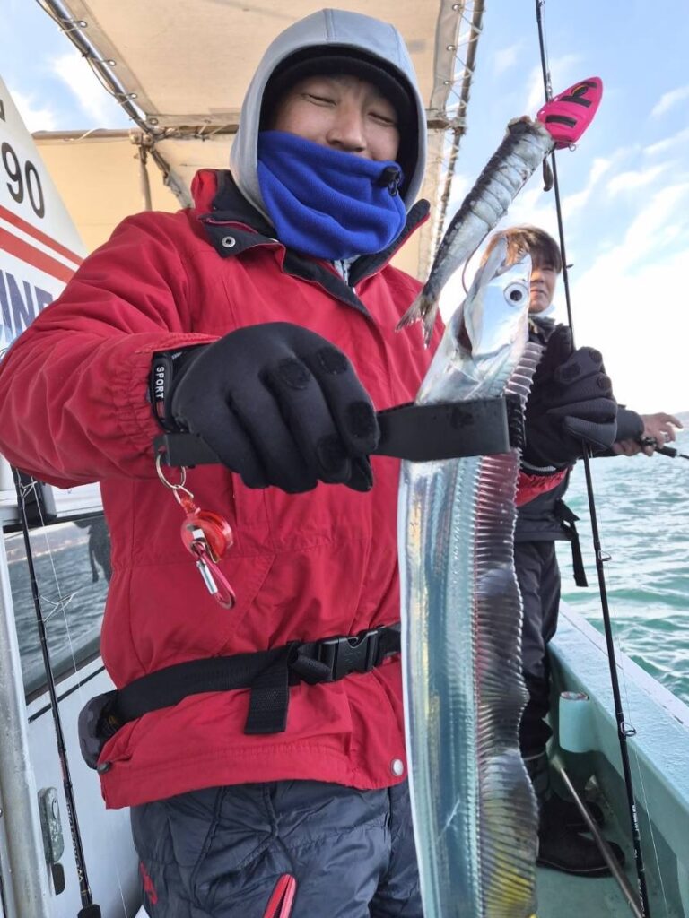 12月13日(土)の釣果・・太刀魚(3H・神戸沖)1人4〜20匹(10匹以上の方多数)・サワラ1匹・ハマチ1匹