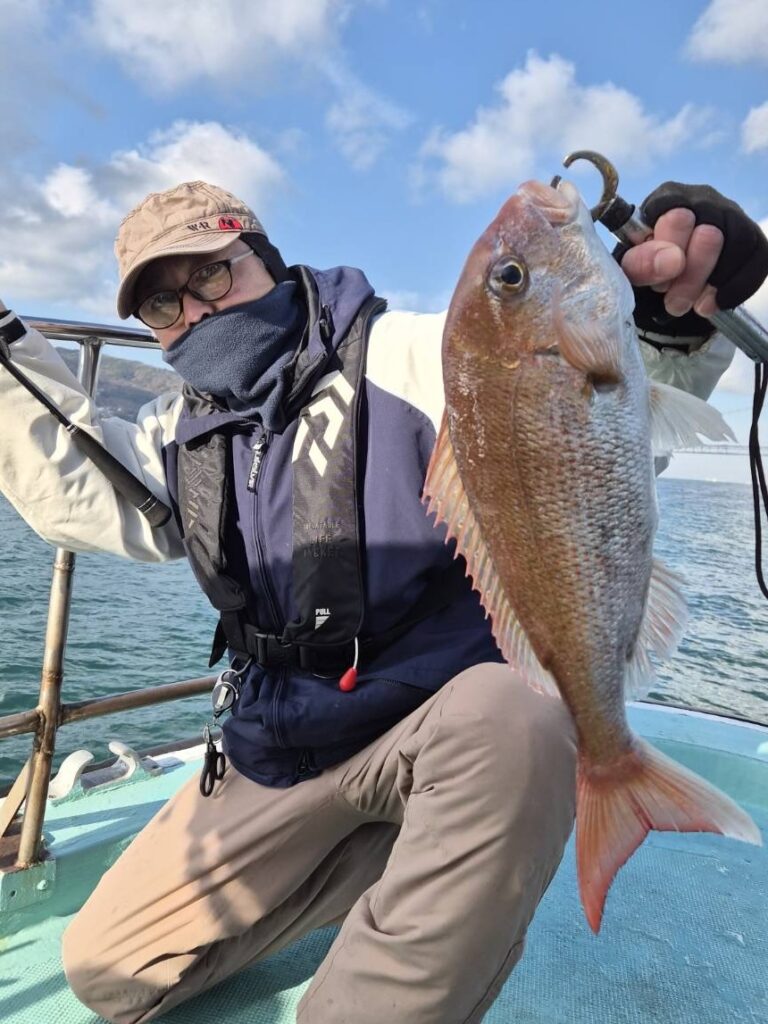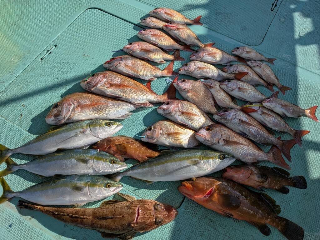 12月27日(土)の釣果・・タイ30匹(写真他リリース8匹)・アコウ3匹・ハマチ4匹・コチ1匹