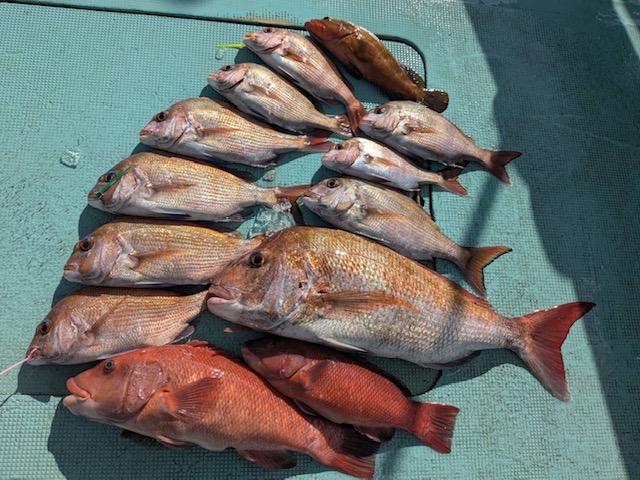 12月31日(水)の釣果・・タイ13匹(写真他リリース2匹・1匹撮り忘れ)・アコウ2匹(1匹クーラー)カンダイ2匹・ガシラ