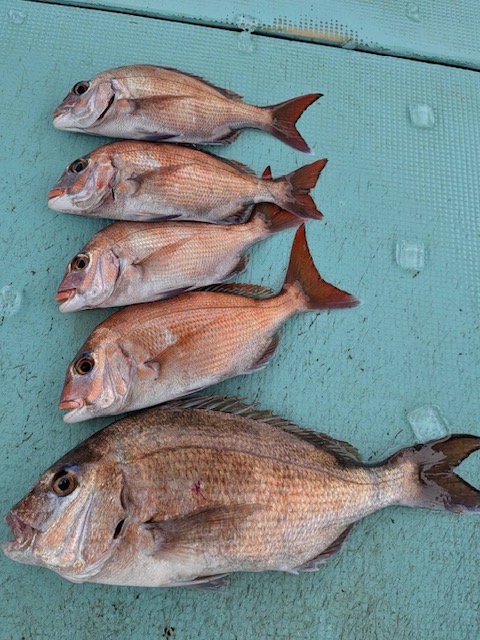 4月15日(水)5名様の釣果・・タイ5匹(28〜41㌢)・アジ1匹 アタリはありますが難しい状況でした>_< 雨風強くなり11時半終了しましたm(_ _)m