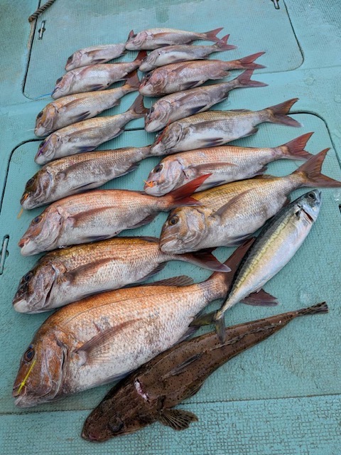 4月25日(土)の釣果・・タイ15匹(57〜28㌢)・サバ1匹・コチ1匹